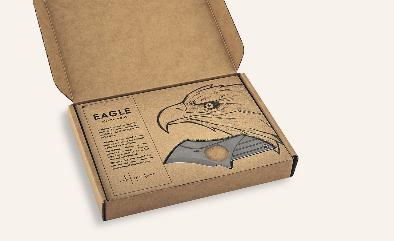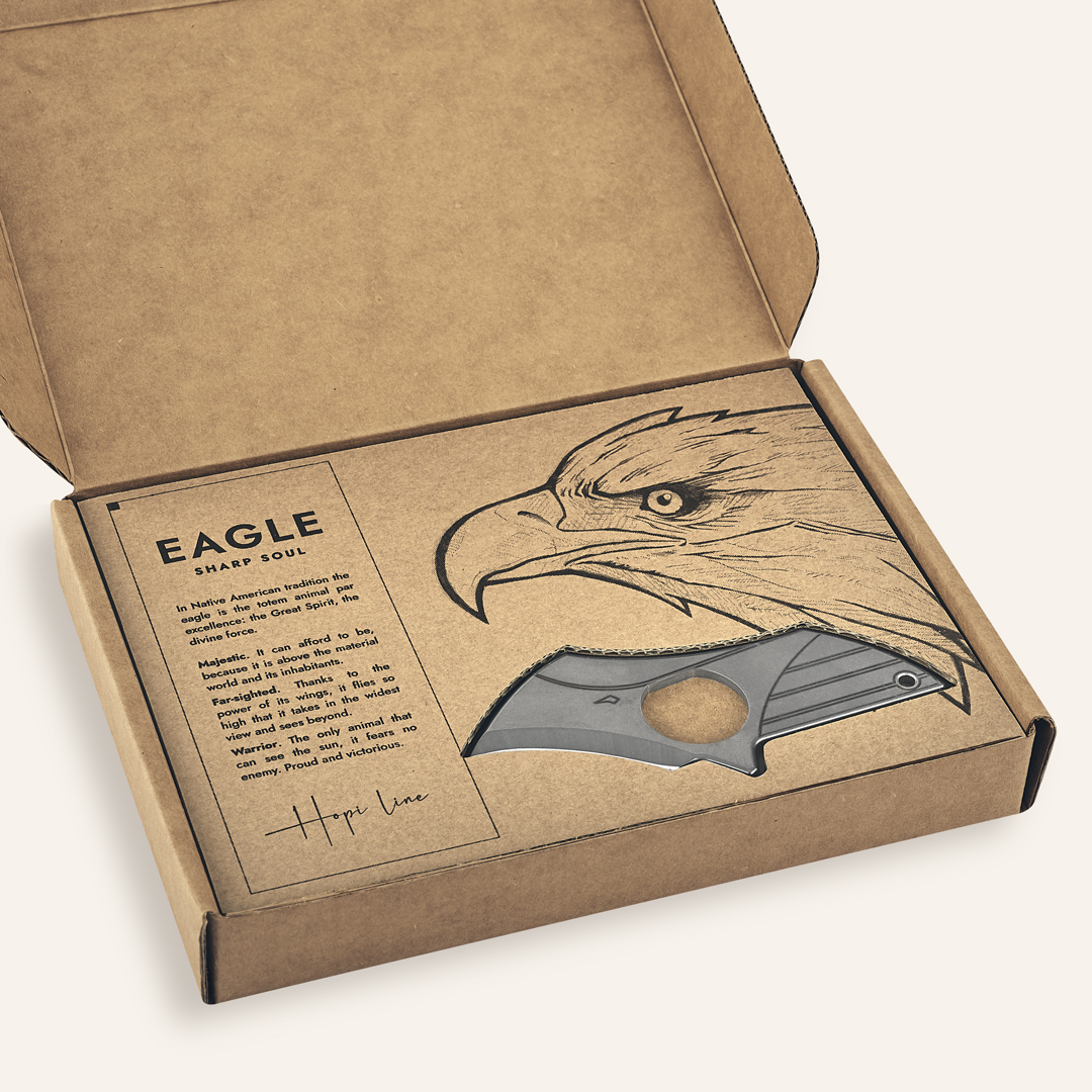EAGLE è il coltello ideale per lo spacchettamento. Che sia il tuo ordine effettuato su internet, un acquisto fatto in un negozio o un regalo appena ricevuto, la sua lama affilata ti sorprenderà. Portalo sempre con te o regalalo come auspicio di lungimiranza o augurio di belle novità.